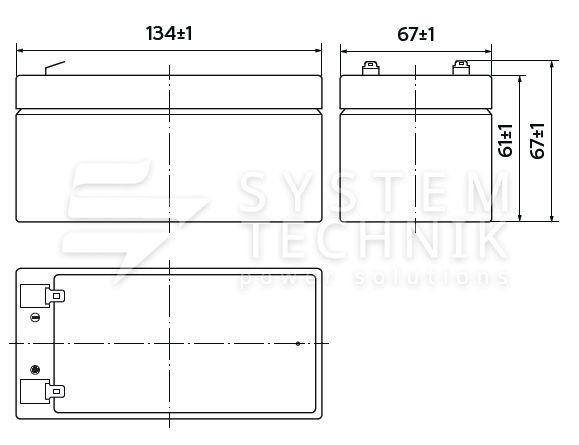 - Срок хранения без подзаряда: 6 мес. при 25°C;