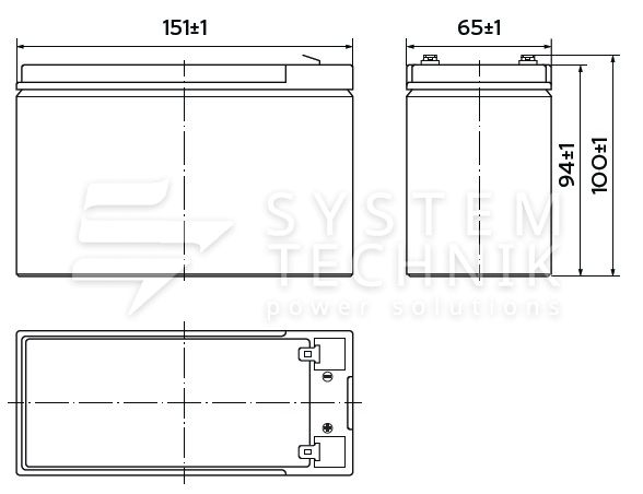 - Срок хранения без подзаряда: 6 мес. при 25°C;