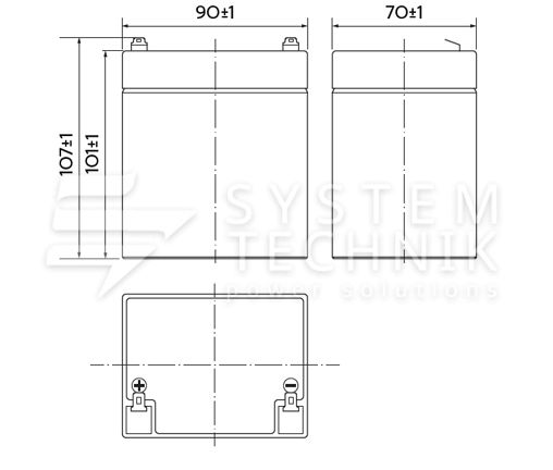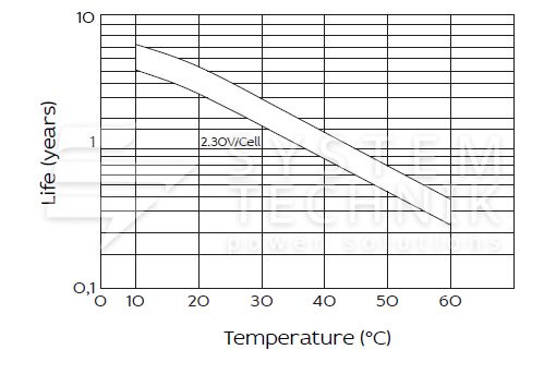 - Срок хранения без подзаряда: 6 мес. при 25°C;