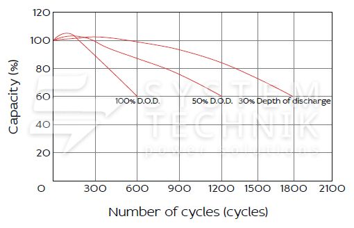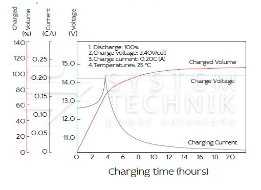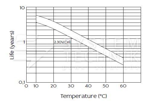 - Срок хранения без подзаряда: 6 мес. при 25°C;