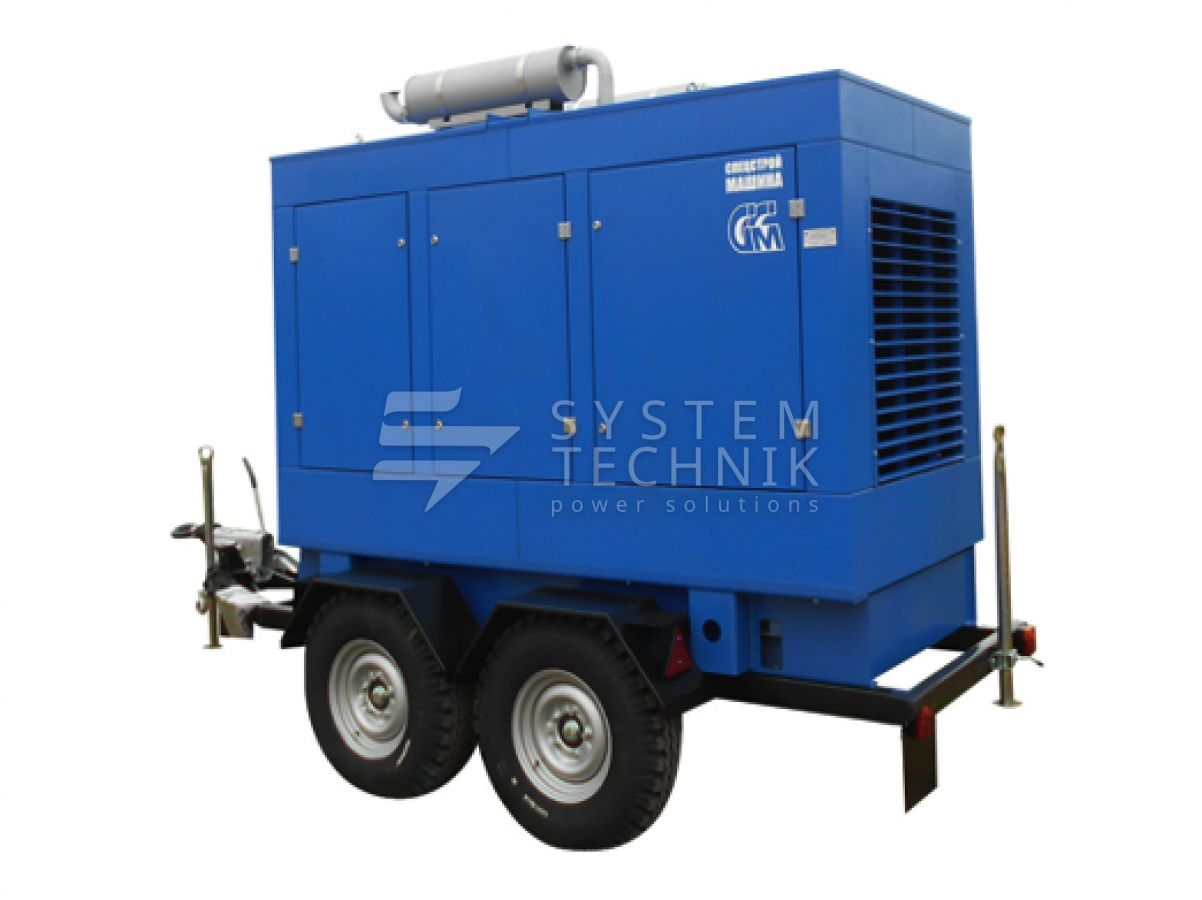 - ССМ ЭД-120-Т400-1РКМ2 (Marelli) в шумозащитном кожухе на шасси на прицепе